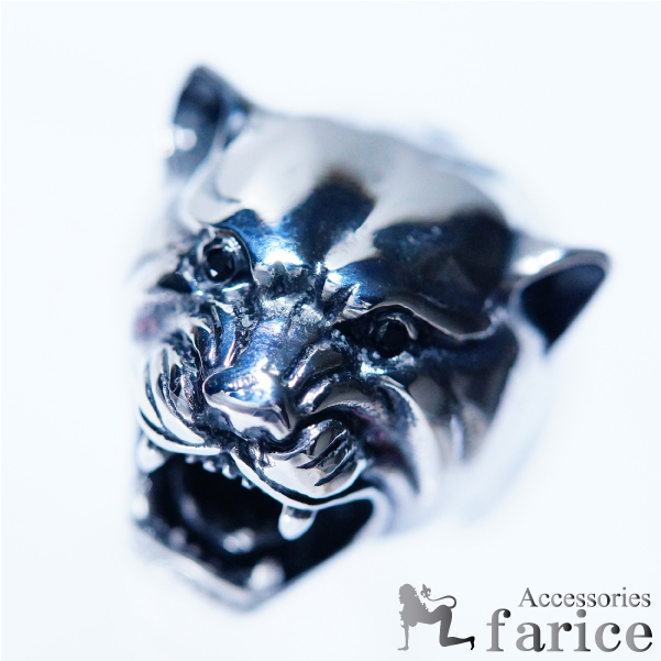 パンサー 豹 ブラックキュービックジルコニアアイ パワフルワイルドリアルファングパンサー メンズステンレス 3D立体アレンジ リング