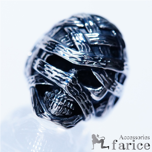 ブラック燻し調仕上げアレンジ ダークアイバンテージミイラモンスタースカルメンズステンレス ホラーリング