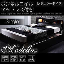 【送料無料】モダンライト・コンセント収納付きベッド【ブラック】【ボンネルマットレス付き】シングル