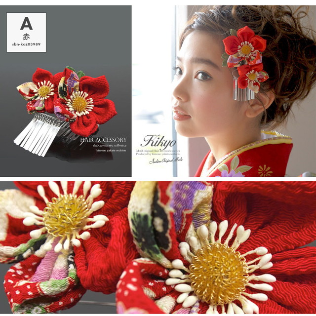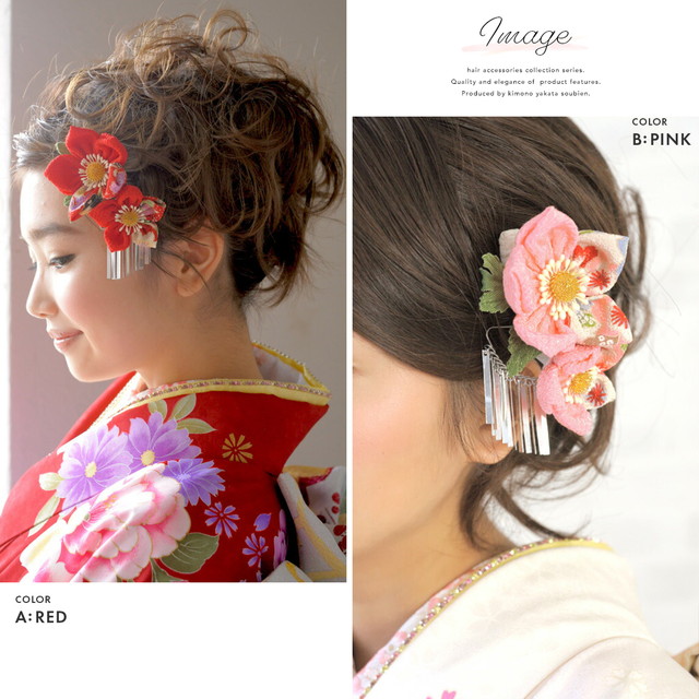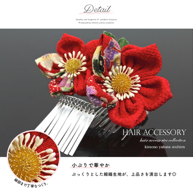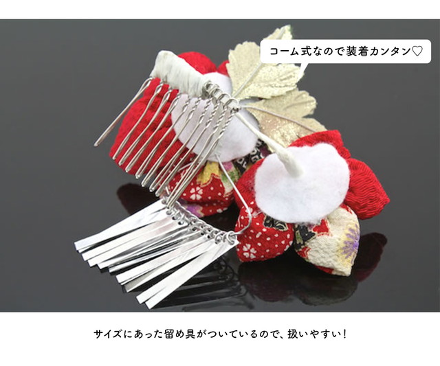 こちらの留め具はコーム式(櫛型)です。現在風のヘアアレンジにも柔軟に対応し、使用していただけます。髪の短い方は、ヘアピン等で補うと綺麗に留められます。