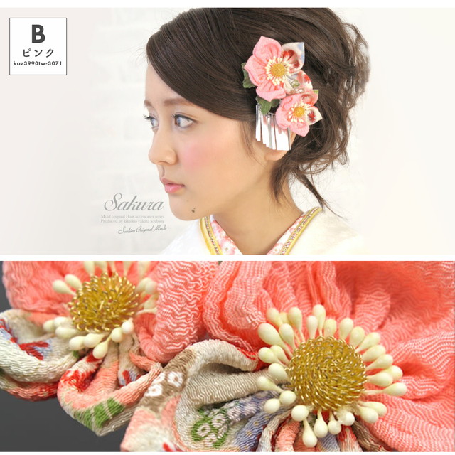 ※つまみ細工を固定しているテープの色が異なる場合がございます。予めご了承ください。