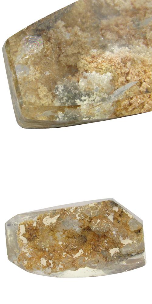 淡くオレンジがかった内包物が一面に広がり、内部の亀裂部分には繊細な輝きも見られる、とても透明度の高い美しいガーデンです。