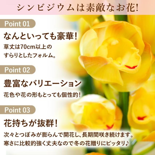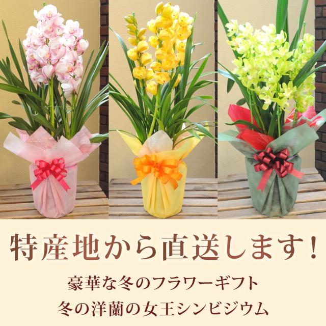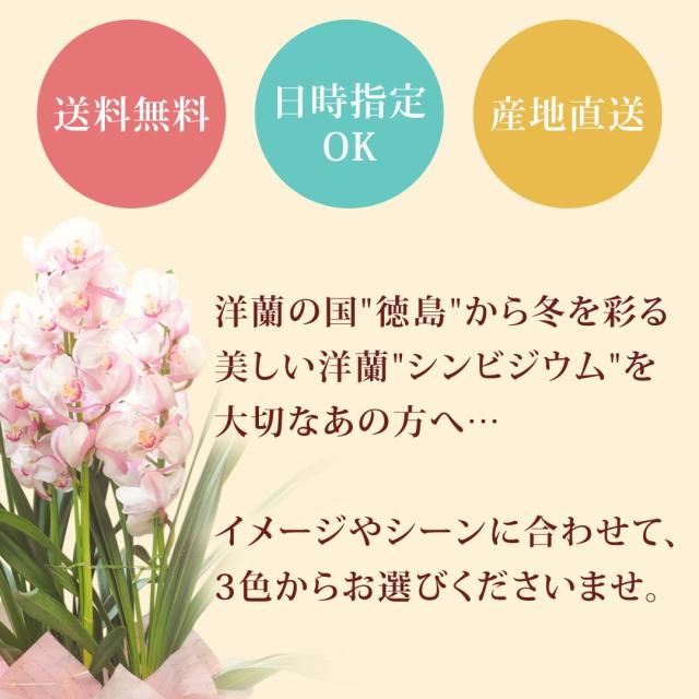 送料無料 洋蘭の国、徳島から シンビジウム 3〜4本立 選べる3色 御歳暮 冬ギフト 花 ギフト 鉢植え 花鉢 鉢花 洋ラン 洋らん 蘭 誕生日 プレゼント 母 祖母 女性 退職祝い 開店祝い 寒冷地不可 クリスマス 法人 還暦祝い 移転祝い 開院祝い 11/22〜12/25で日時指定OK