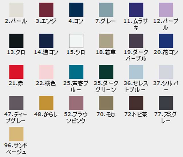 ※但し、02.パール、15.シロ、22.桜色、50.ピンクは静電防止素材ではありません。