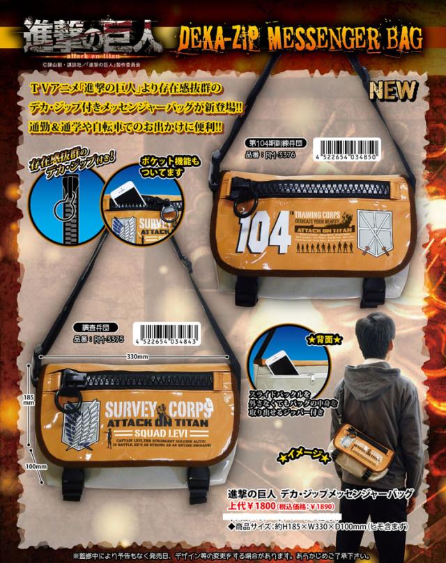 進撃の巨人 デカ・ジップメッセンジャーバッグ 調査兵団 第104訓練兵団 (20131226発売)