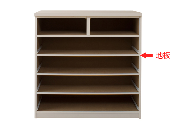 すべての引き出しに地板が付いており、反りやゆがみを抑えてくれます。いつまでも長くご愛用いただける造りになっております。