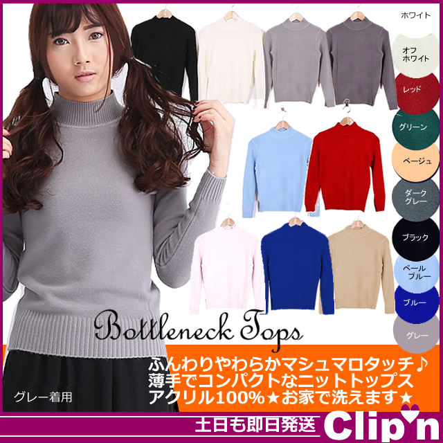 【メール便/送料無料】洗える ニット モック ボトル ネック プルオーバー やわらか 長袖 平織り 薄手*トップス[即納即日発送あす着]