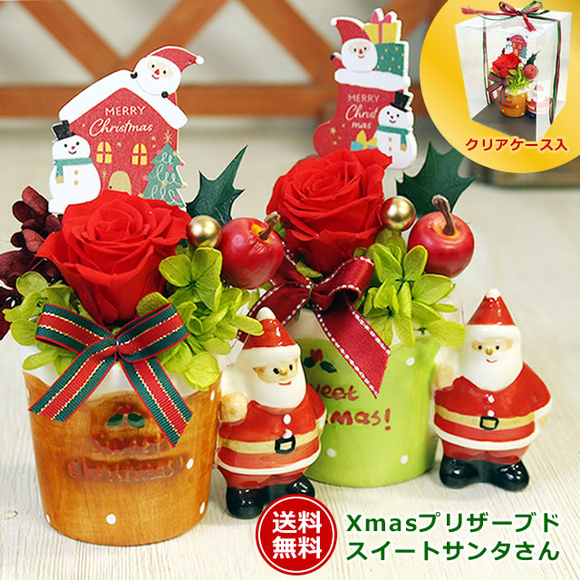 プリザーブドフラワー スイートサンタさん ケース入り 送料無料 花 アレンジメント プレゼント ギフト 贈り物 フラワーギフト 誕生日 結婚記念日 お見舞い お祝い 結婚 転勤 発表会 パーティ クリスマス Xmas お歳暮 新年 年賀 初売り