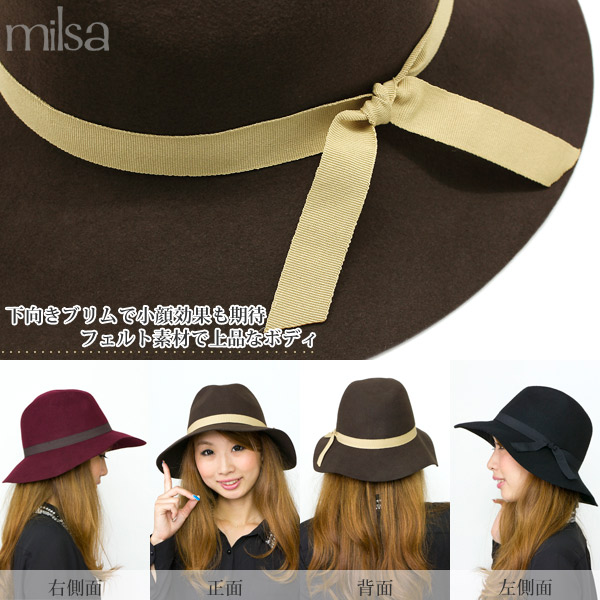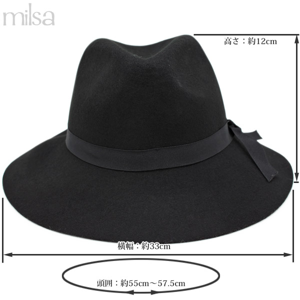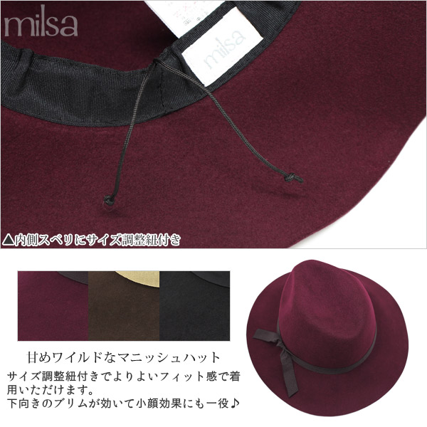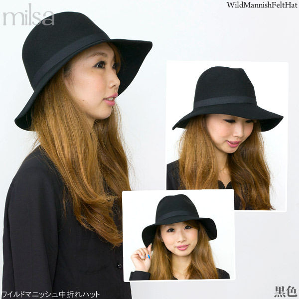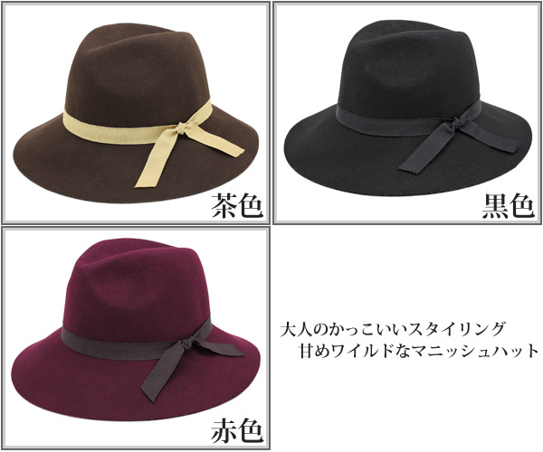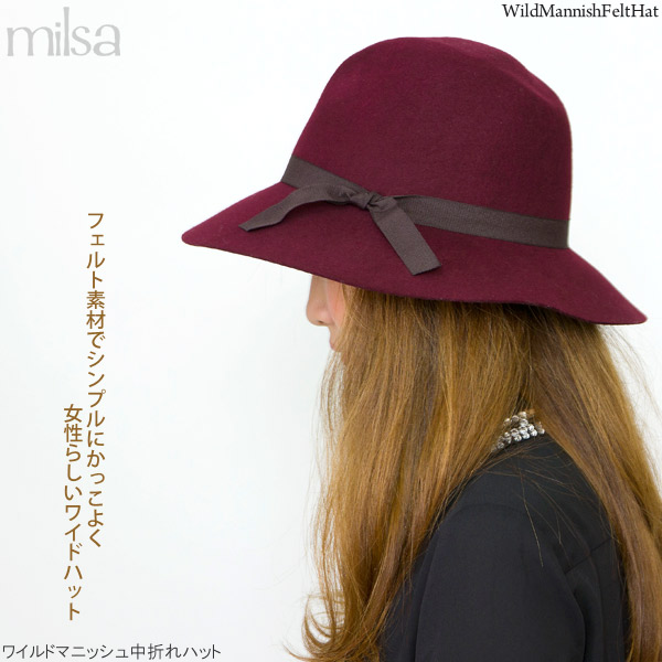 ハット レディース 帽子 つば広 中折れ フェルト サイズ調整 女性用 秋冬 女優帽 / ワイルドマニッシュ中折れハット