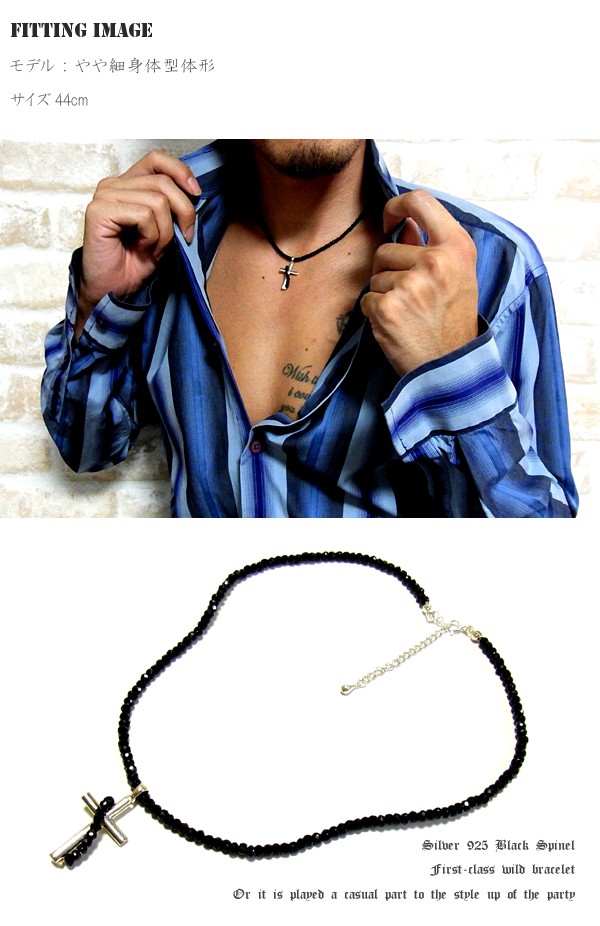 BOX付き”シルバー925大クロスブラックスピネルネックレス/ギフト/