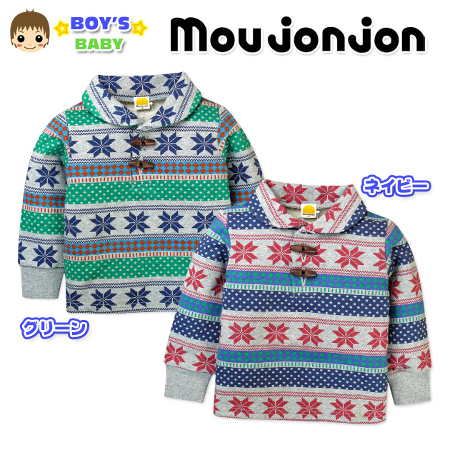 【男児ベビー】【トレーナー】Moujonjon/ムージョンジョン 雪柄&ヘチマカラー 粗挽き裏毛襟付きトレーナー