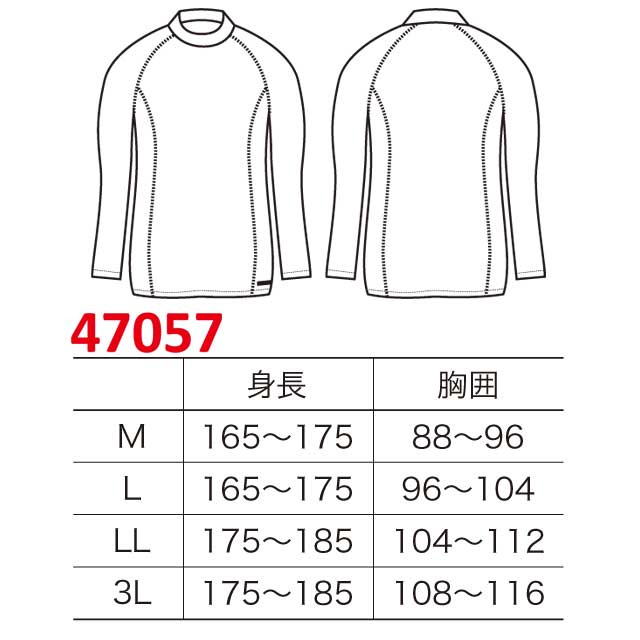 作業服 インナー クロダルマ コンプレッションハイネック 長袖シャツ 47057 JIS T-8118適合 KURODARUMA