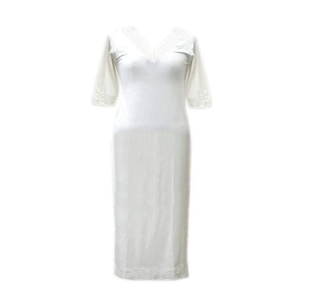 肌着 ワンピース スリップ レース 女性用 冬用 ヒート+ふぃっと M L オフホワイト白色地 七分丈 着物 振袖 成人式 卒業式 袴 和装 下着