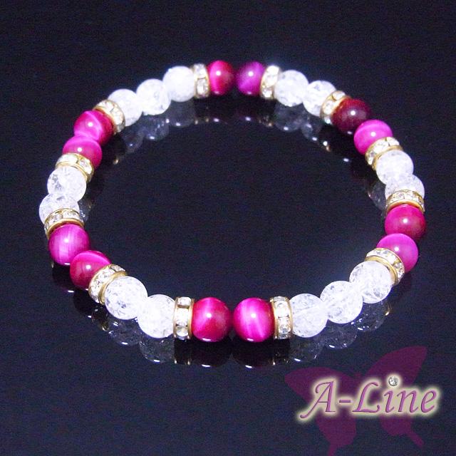 AAAピンクタイガーアイ(染め)&クラッククリスタル6mm・合金ロンデル・国産高級オペロンゴム
