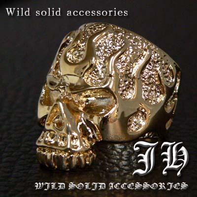 無くなり次第終了 リング ファイヤースカルsvゴールドcolorメンズ指輪 骸骨 炎【 R356 19号 】