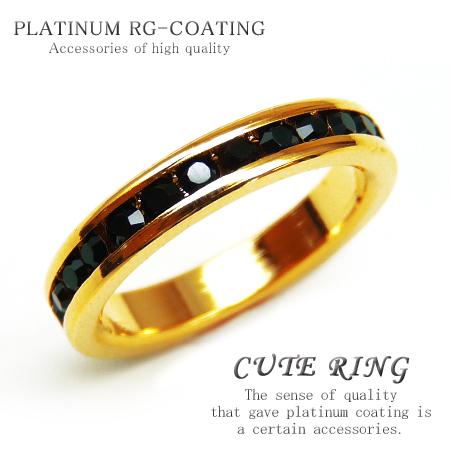 輝くブラックCZダイヤ かわいいピンキーリング 高級プラチナRG加工 パーティー 結婚式に ゴールド【 kor301 15号 】