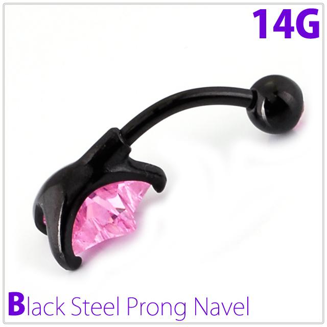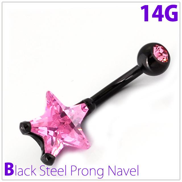 へそピアス 14G ブラックベース ピンク ジルコニア スター 耳たぶピアス ボディピアス ステンレスピアス