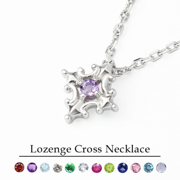 ロジウムコーティング シルバー925 ダイヤ クロス 誕生石ネックレス