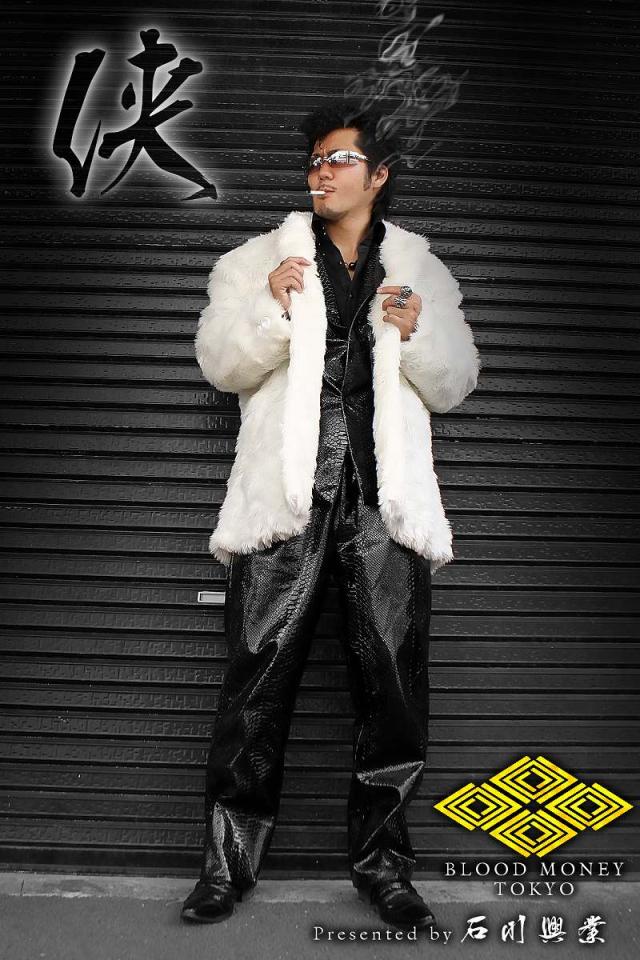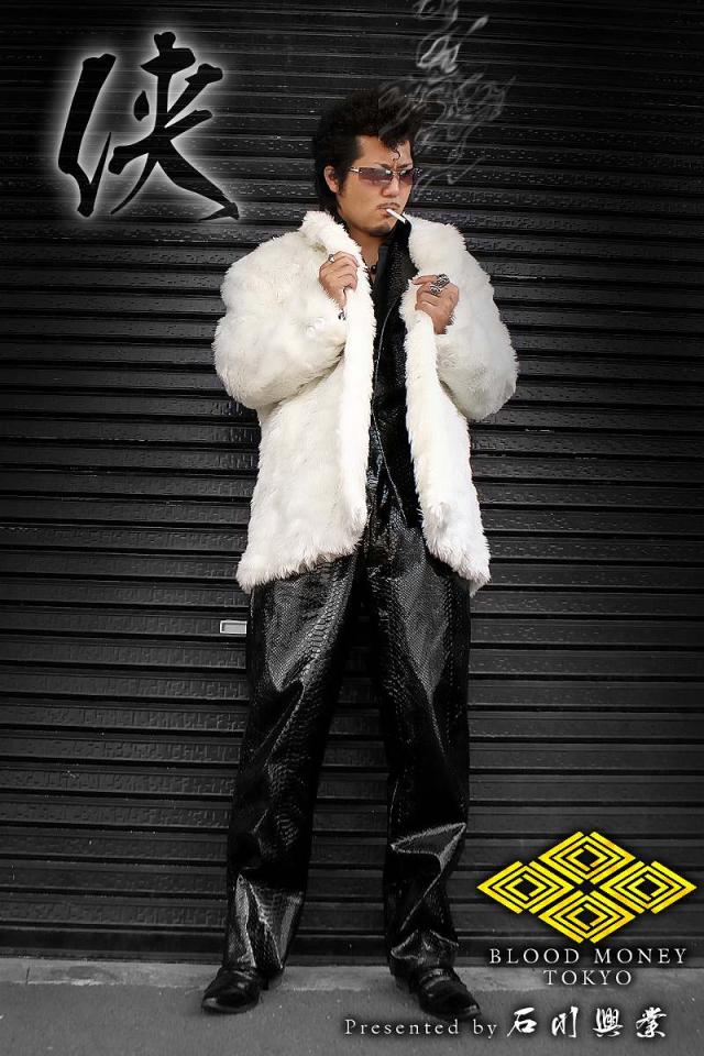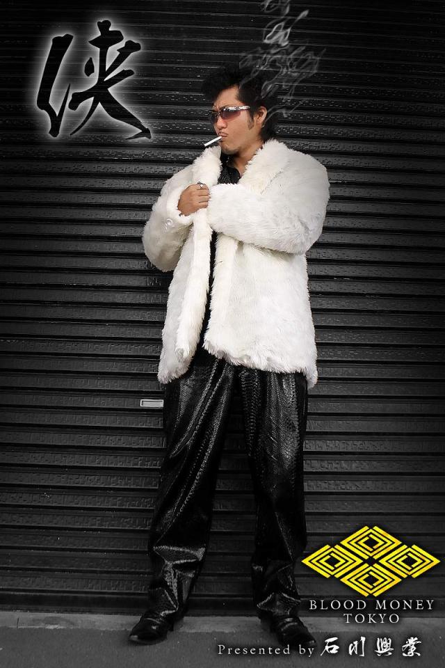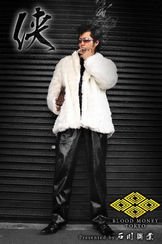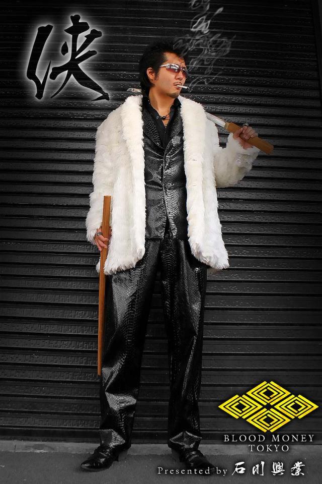 送料無料※13037白 BLOOD MONEY TOKYOファーコート ヤクザ服チョイ悪チョイワル ホストスーツ冠婚葬祭成人式結婚式二次会 悪党の店 バースジャパン BIRTHJAPAN
