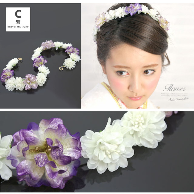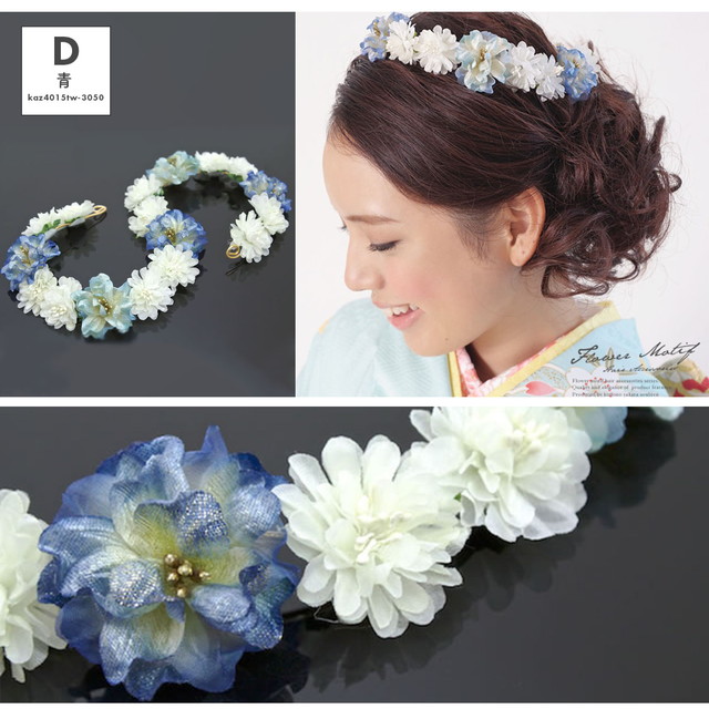 成人式 髪飾り 成人式の髪飾り 振袖向け 浴衣向け 七五三 結婚式 赤 ピンク 青 紫 黄色 花冠 花かんむり カチューシャタイプ フラワークラウン ワイヤー 髪留め 髪かざり 振り袖 ヘアアクセサリー 和装