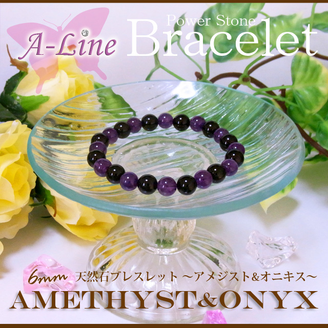 パワーストーン ブレスレット 癒しにも アメジスト&オニキス8mm PW-2385