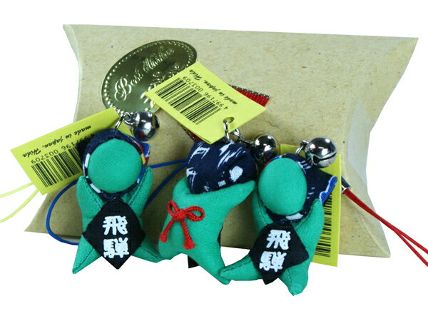 風水さるぼぼストラップ・グリーン 緑 (飛騨のお守り)3個入ギフトボックス風水パワー(安らぎと健康・安全・才能UP・強調