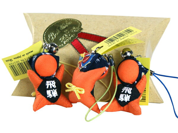 風水さるぼぼストラップ・オレンジ(橙)(飛騨のお守り)3個入ギフトボックス風水パワー(旅立ち・子宝・安産祈願・女性的・