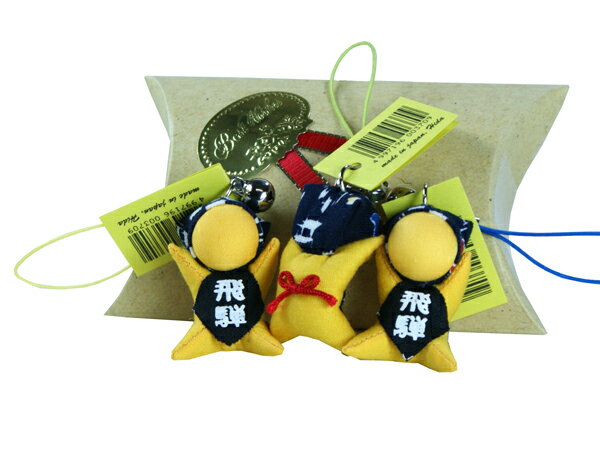 風水さるぼぼストラップ・イエロー(黄)(飛騨のお守り)3個入ギフトボックス風水パワー(金運・変革・変化・成りたい自分に