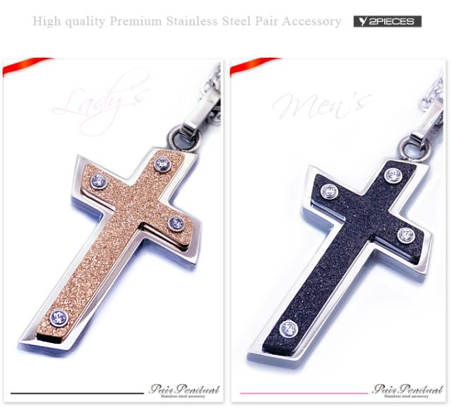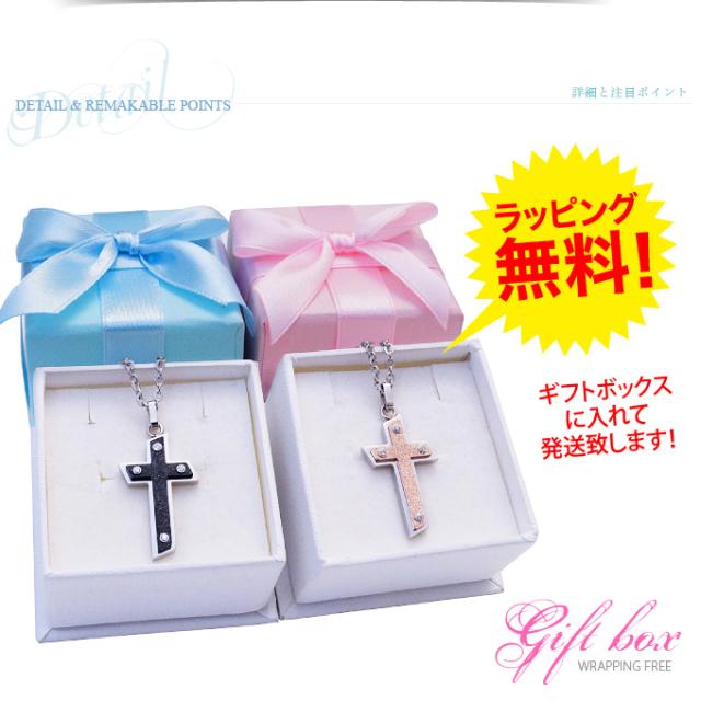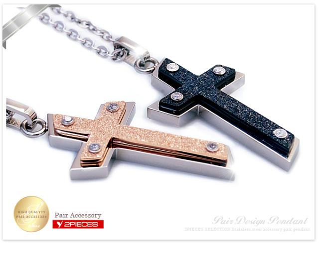 ペアネックレス ステンレス クロス 十字架 ジルコニア ブラック ピンク spe0321-pair チェーン・BOX付きペアセット