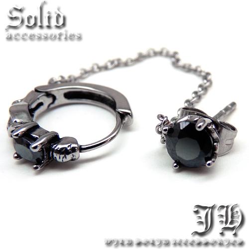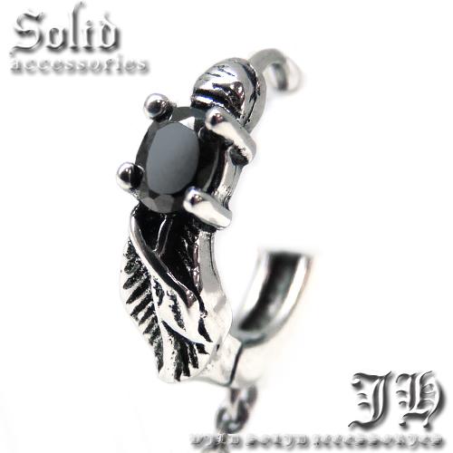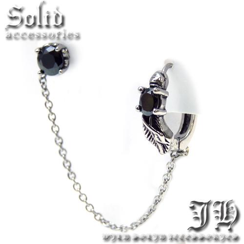 フェザー ステンレスピアス 1個売 羽根 翼 黒 リング&チェーン メンズ ピアス 片耳 2ホール用 【 aip21 】
