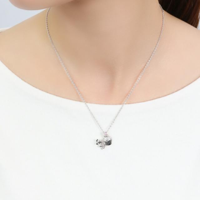 ディズニー ミッキー カップケーキ ネックレス ペンダント レディースネックレス シルバー 925 ジルコニア ミッキーマウス ミッキーネックレス