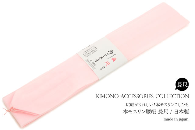 腰紐 着物 浴衣 ピンク 純毛モスリン 長尺 着付け小物 和装小物 腰ひも【メール便配送OK】