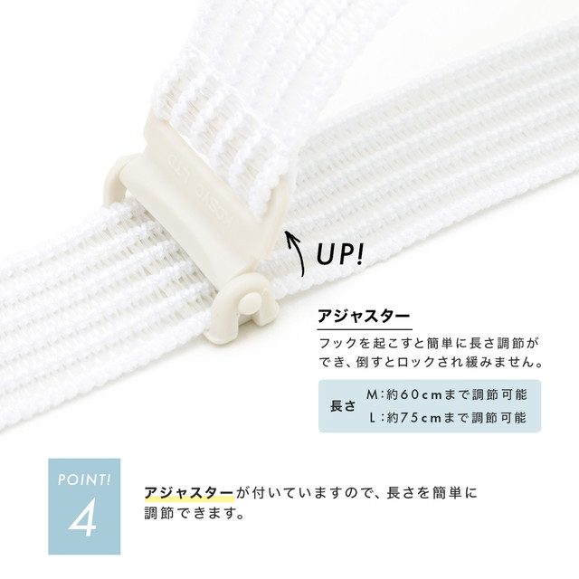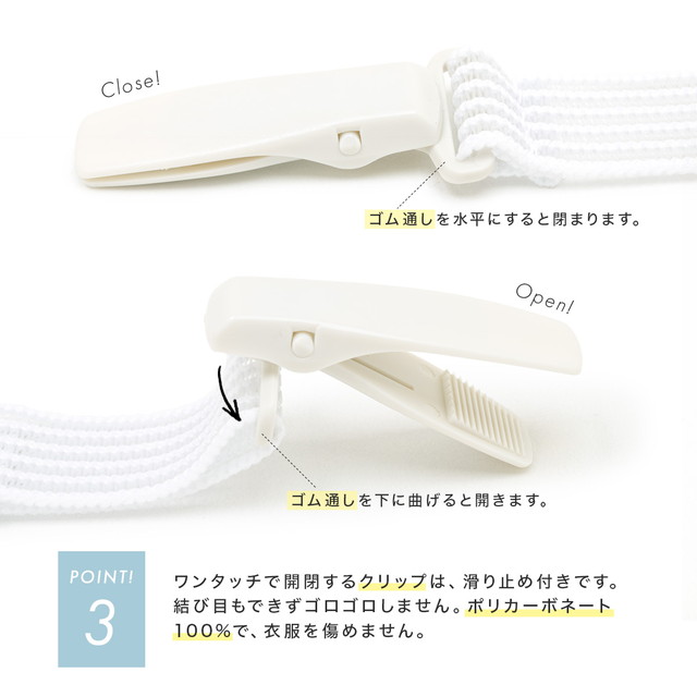 アジャスターでゴムの長さも調節でき伸縮に優れ、緩まず胸を締め付けません。