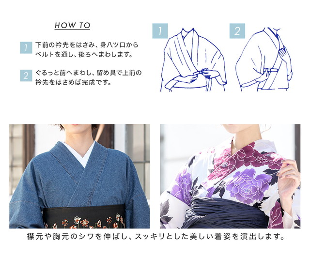カジュアルやフォーマルのお着物だけでなく、長襦袢、浴衣など幅広くご使用いただけます。
