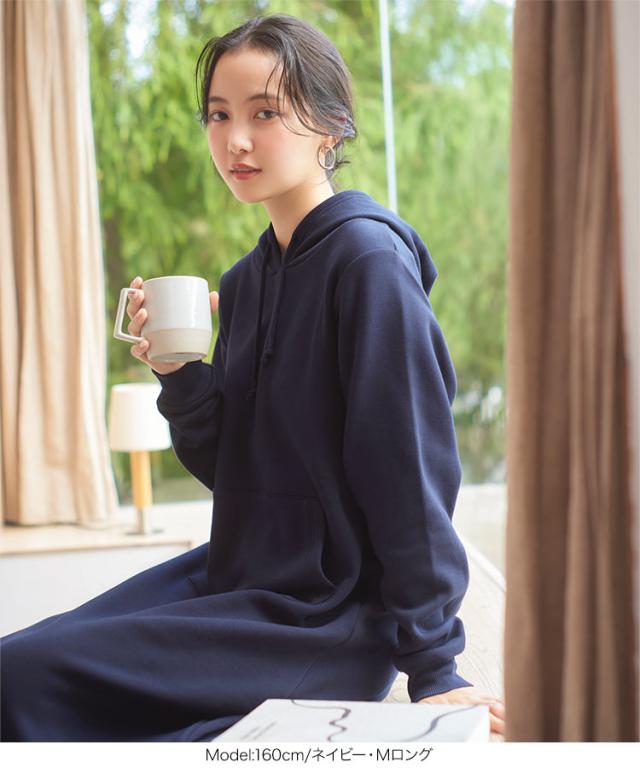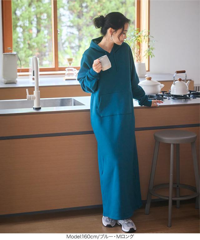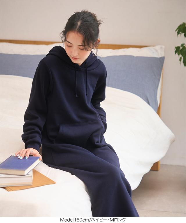 [ ぬく盛り ] フード付裏起毛マキシ丈スウェットパーカーワンピース E1121 入荷済 レディース あったか グッズ ロング パーカー こたつ 着る毛布 暖かい マキシワンピ スウェットワンピース 大きいサイズ 暖か 冷え