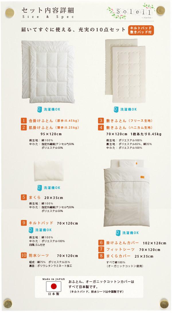 プリエール『ソレイユ』オーガニックコットンベビーふとん 10点セット