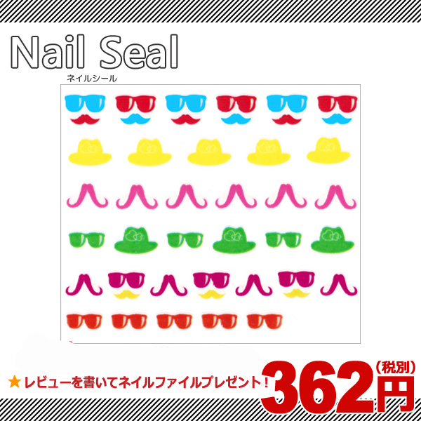ネイルシール カラーひげ&ハット&グラサン