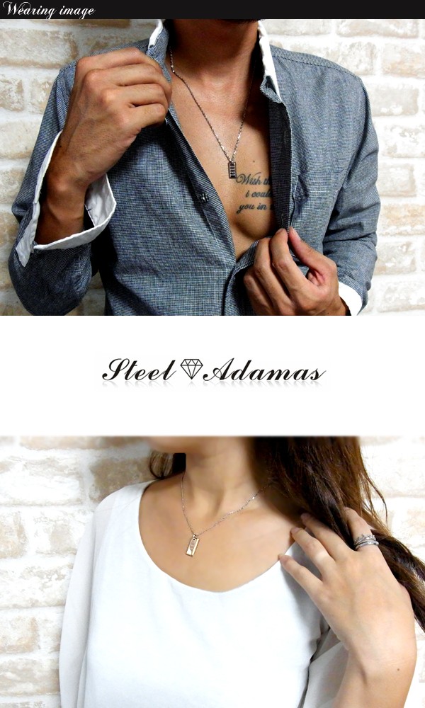 送料無料 ペアアダマスダイヤモンドステンレスネックレス/メッセージプレート/刻印無料/Adamas/