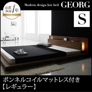 【送料無料】モダンライト・コンセント付きローベッド(ウォールナット)ボンネルコイルマット付 シングル