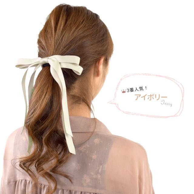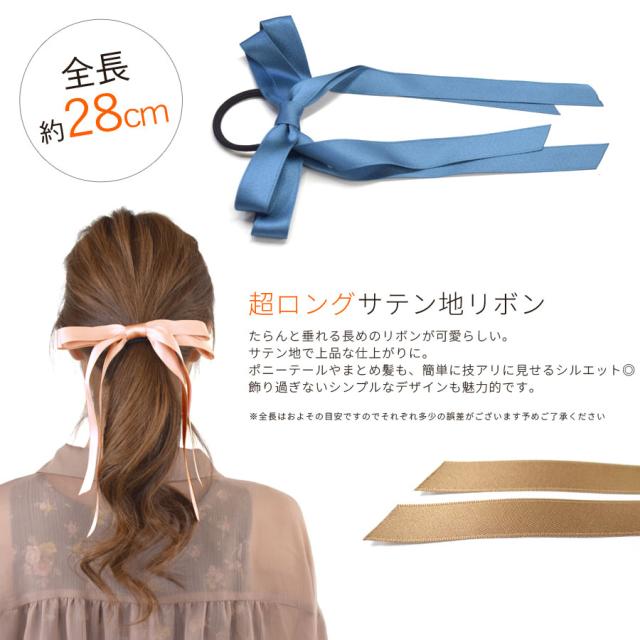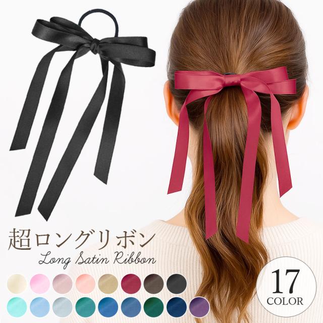ロングリボン ヘアゴム リボン 大人 レディース ヘアアクセサリー ヘアポニー ハーフアップ 超ロング 光沢 サテン地 ループリボン 髪留め まとめ髪 シンプル 上品 きれいめ 結婚式 推し活 オケージョン 韓国 送料無料 (hak221)