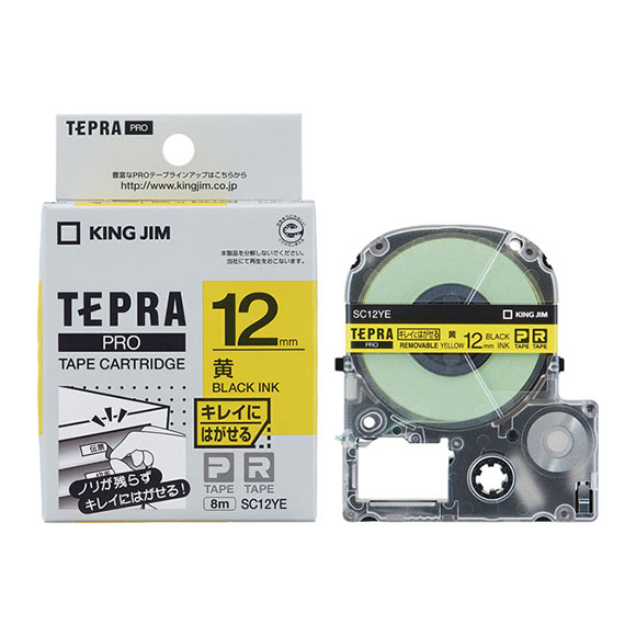キングジム PRO テープカートリッジ キレイにはがせるラベル (12 幅/黄テープ/黒文字) SC12YE返品種別A