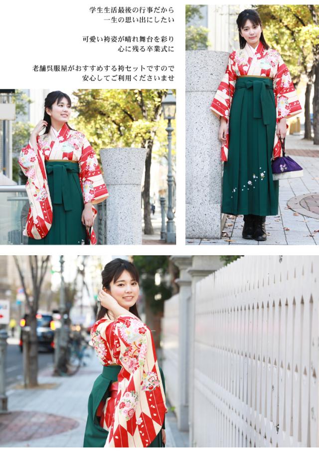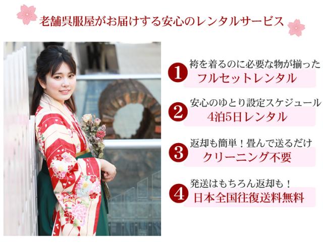 卒業式 袴 レンタル 女 袴セット 女 卒業式袴セット2尺袖着物&袴 フルセットレンタル