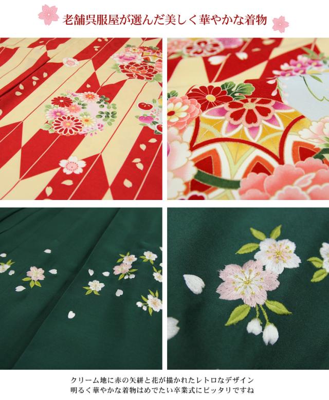 卒業式/謝恩会の2尺袖着物&袴&着付け小物のフルセットでお届けです。必要なもの全て揃ってるから安心♪
