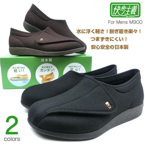 快歩主義 介護シューズ メンズ 靴 黒 ブラック コンフォートシューズ 幅広 4E 甲高 撥水 軽量 軽い 日本製 室内 抗菌 防臭 介護靴 履きやすい 男性 ASAHI アサヒ M900