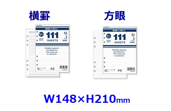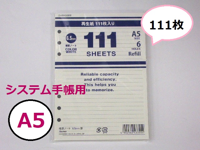 システム手帳 リフィル A5 DAR4008 たっぷり111枚 605円 横罫 5mm方眼 6穴 DAR4010 メール便OK