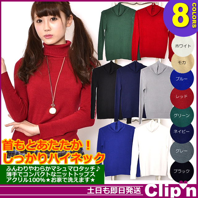 【メール便/送料無料】洗える 薄手 シンプル タートル ハイネック やわらかニット*トップス[即納即日発送あす着]