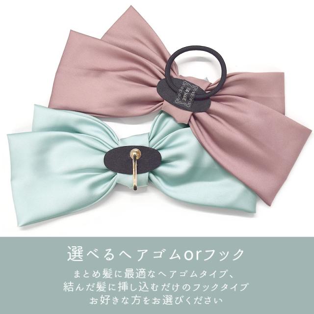 BIG リボン ヘアゴム ポニーフック サテン 大きい 大きめ レディース ヘアアクセサリー シンプル 無地 ハーフアップ ヘアポニー ヘアカフス アレンジ ポニーテール 上品 推し活 パーティー オケージョン 韓国 送料無料 (hak233)