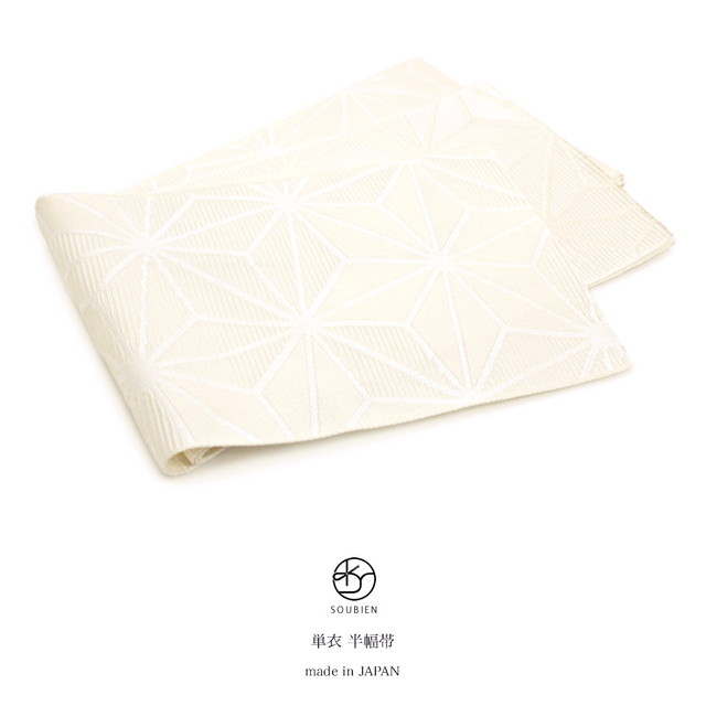 浴衣 帯 半幅帯 白 ホワイト 麻の葉 半巾帯 細帯 単衣 女性帯 浴衣帯 浴衣用 袴用 小紋用 紬用 着物用 日本製 メール便対応