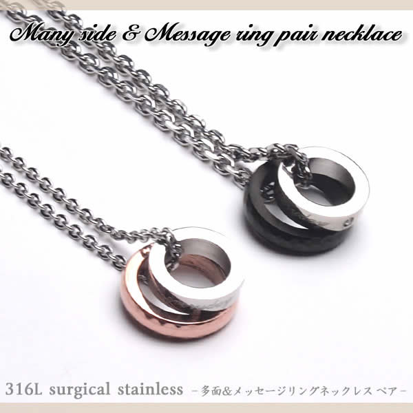 316Lステンレス 多面&メッセージリングネックレス ペア【 プレゼント 金アレ 対応 】