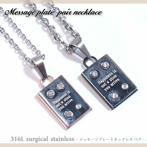 316Lサージカルステンレス メッセージプレートネックレス ペア